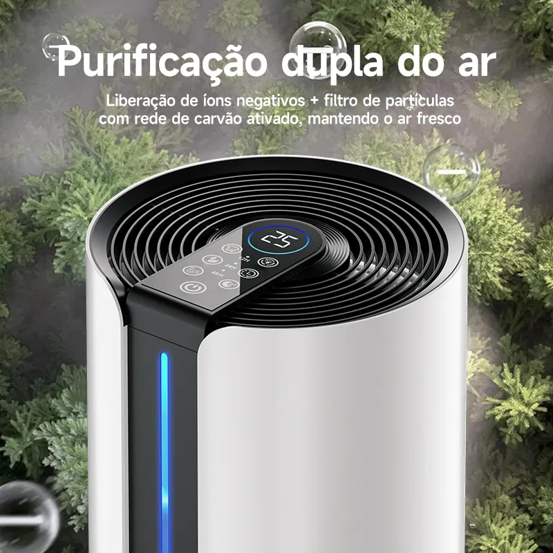 Equipado com filtro de carvão ativado e emissão de íons negativos, auxilia na remoção de partículas, poeira e impurezas, contribuindo para um ambiente mais limpo e saudável.