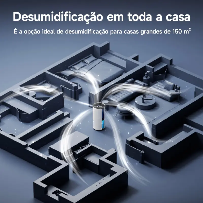 Com capacidade de extração de até 12 litros por dia, o equipamento se destaca frente a modelos convencionais, entregando eficiência real na remoção da umidade do ar — ideal para residências, escritórios e ambientes amplos de até 150 m².